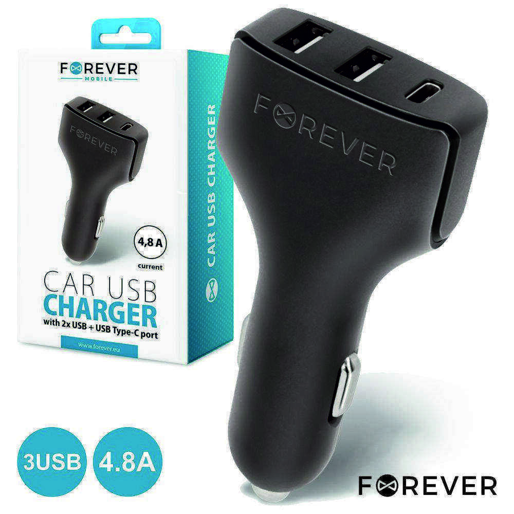 Adaptador Isqueiro 2xUSB E 1xUSB-C 4.8a FOREVER