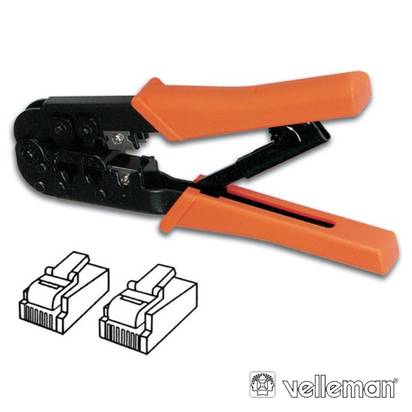 – Alicate p/ Cravar fichas Modulares– Adequado p/ fichas RJ10 (4P4C), RJ11 (4P6C)RJ12 (6P6C) e RJ45 (8P8C)– Estrutura metálica c/ punho plástico