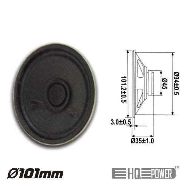 – Impedância: 8 Ohms ± 15%– Potência máxima: 2W– Frequência resposta: 200-10.000Hz– Sensibilidade: 86 ± 2dB, Diâmetro: Ø101mm– Diâmetro Iman: Ø45x8mm– Bobina: Papel Ø14.4mm AL