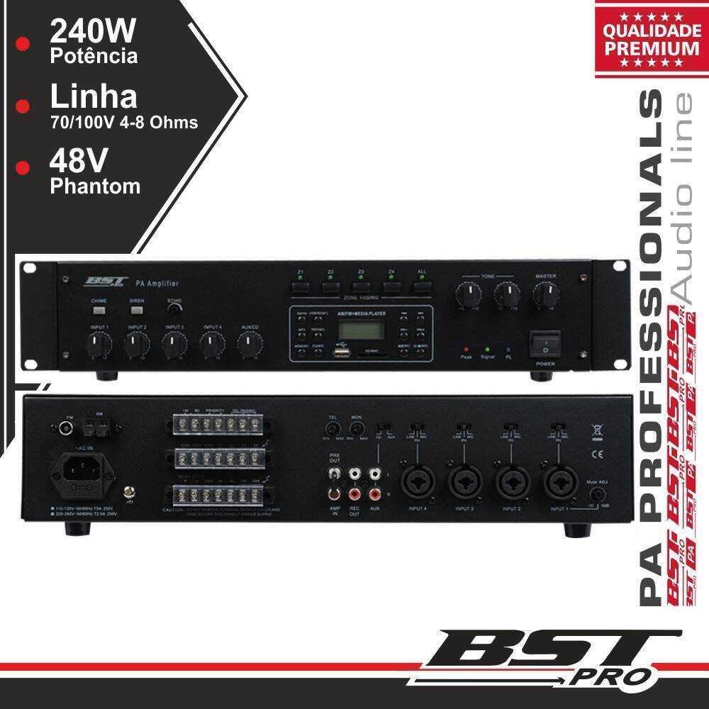 Amplificador Pa Phantom 24V 240W 4 Zonas USB/SD/AM/FM BSTPRO