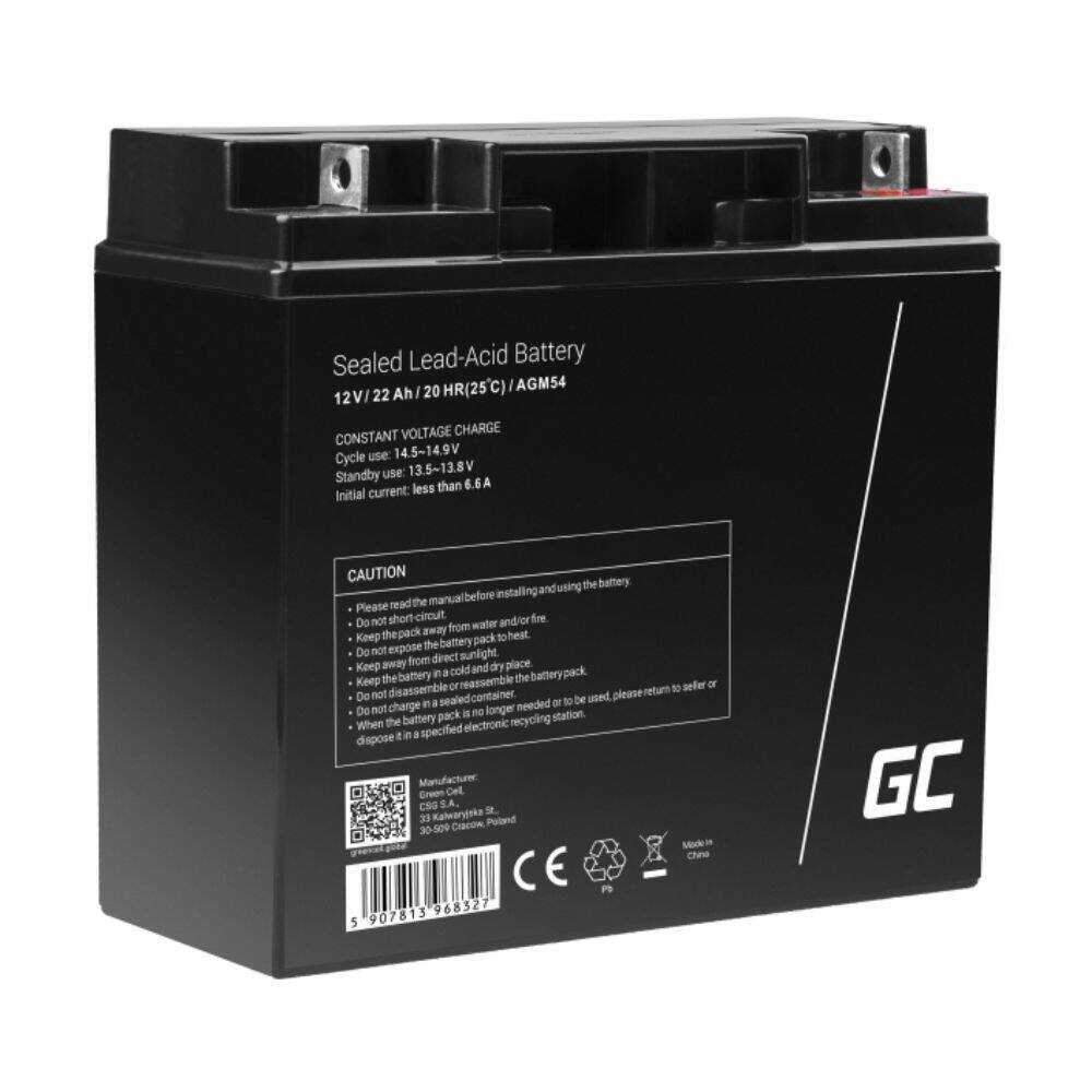 – Bateria de chumbo gel AGM 12V– Carga cíclica: 14.5-14.9V @ 25ºC– Carga flutuante: 13.5-13.8V @ 25ºC– Capacidade: 22Ah– Terminais ligação: F3– Dimensões: 181x77x167mm