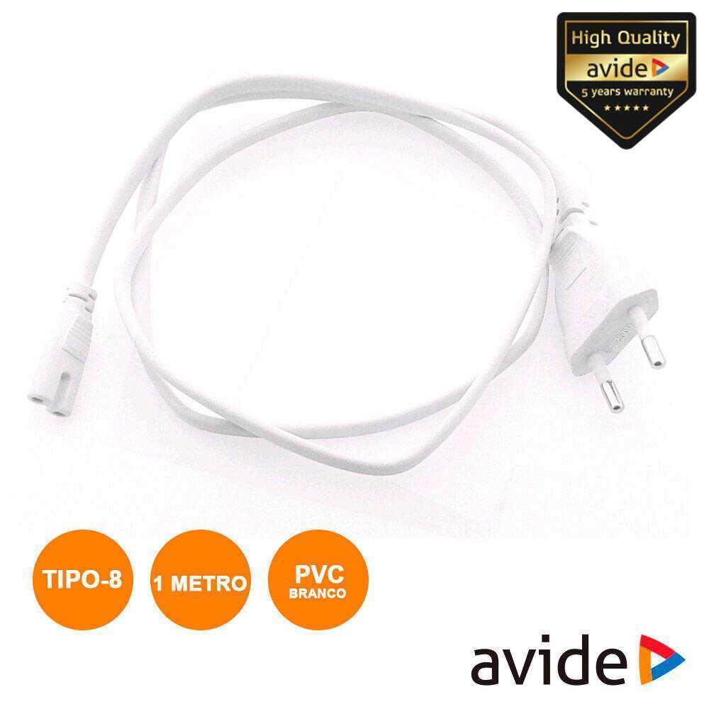 – Cabo alimentação IEC320 C7 Tipo-8– Ficha Europa 2P Macho / IEC320 C7 Macho– Formação do cabo: 2×0.75mm²– Estrutura em PVC Branco– Comprimento cabo: 1 Metros