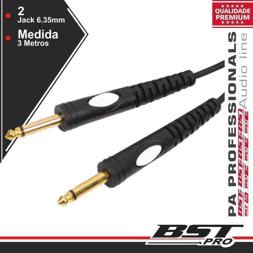 – Cabo de Áudio Profissional JACK/JACK– Jack 6.35mm Macho / Macho Mono– Fichas douradas, protecção de cabo– Comprimento do Cabo: 3 Metros