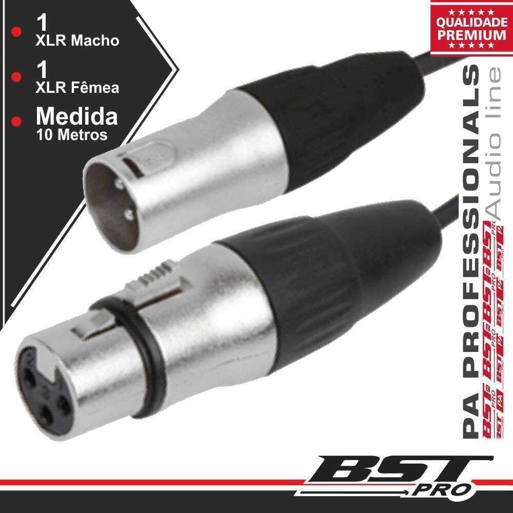 – Cabo de Áudio Profissional XLR/XLR– XLR Macho 3P / XLR Fêmea 3P– Fichas niqueladas c/ protecção de cabo– Comprimento do Cabo: 10 Metros