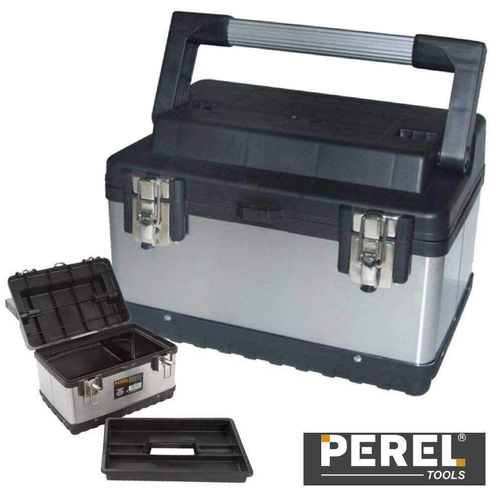 – Caixa de ferramentas em aço inoxidável– Estrutura em aço c/ pega em alumínio– Bandeja amovível c/ 4 compartimentos– Dimensões internas: 345 x 210 x 185 mm