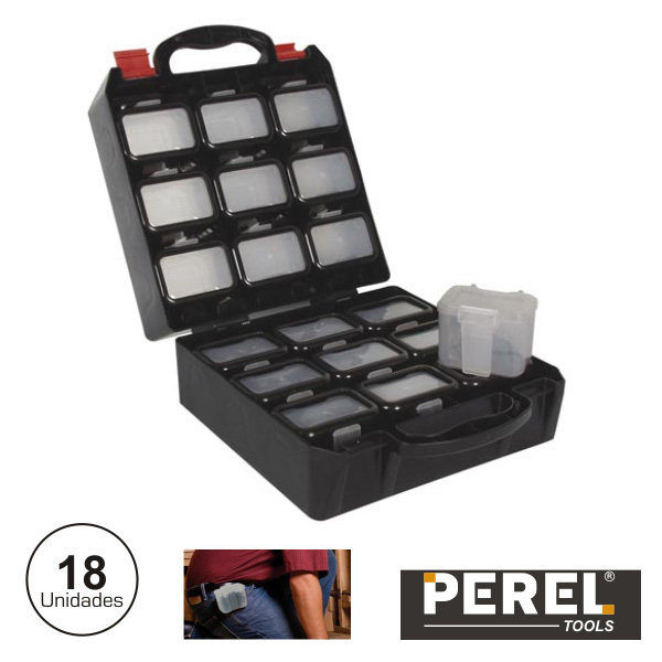 – Caixa de ferramentas c/ 18 CompartimentosRemovíveis c/ clipe p/ apoiar no Cinto