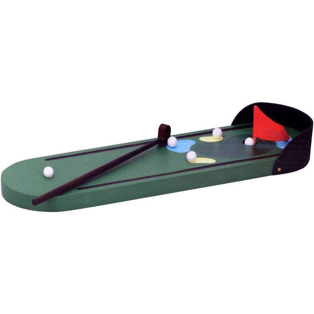 – Campo de mini-golf adequado p/ crianças– Inclui: 5 bolas e bandeiras– Materias: Madeira/Plástico– Dimensões: 32×9.5×3.5cm