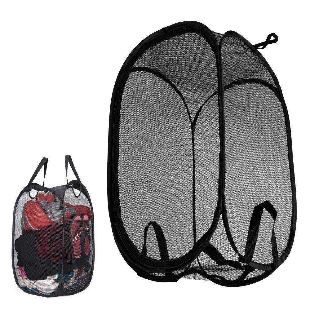 – Cesto leve e portátil c/ alças de transporte– Fecho éclair– Tecido de malha respirável– Ideal para uso em casa, acampar ou viajar– Cor: Preto