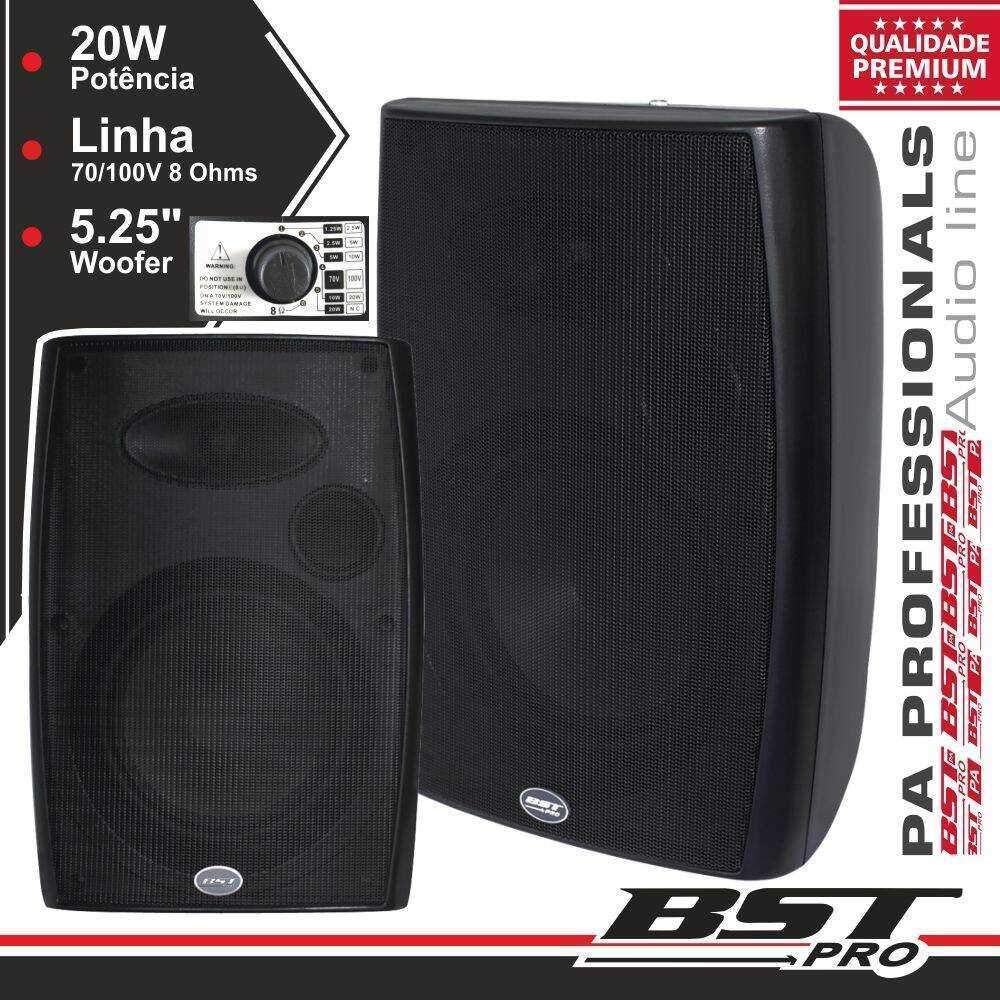 Conjunto 2 Colunas 8 Ohm 100v 30W 5.25″ Pretas BSTPRO