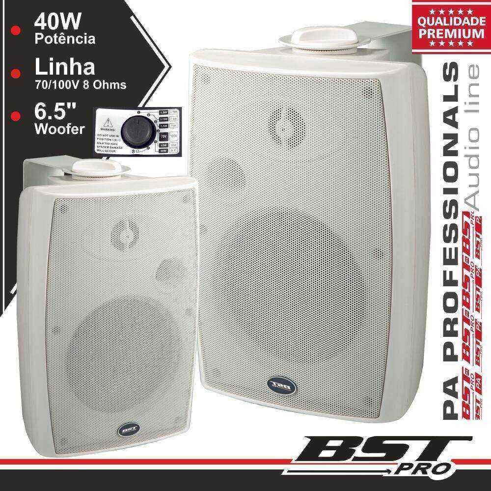 Conjunto 2 Colunas 8 Ohm 100v 40W 6.5″ Brancas BSTPRO