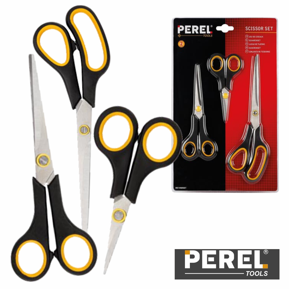 – Conjunto de 3 tesouras multifunções– Lâminas em Aço inoxidável resistente– Punho em plástico c/ revestimento aderente– Meidas: 130mm, 200mm e 250mm– Fornecido em Blister