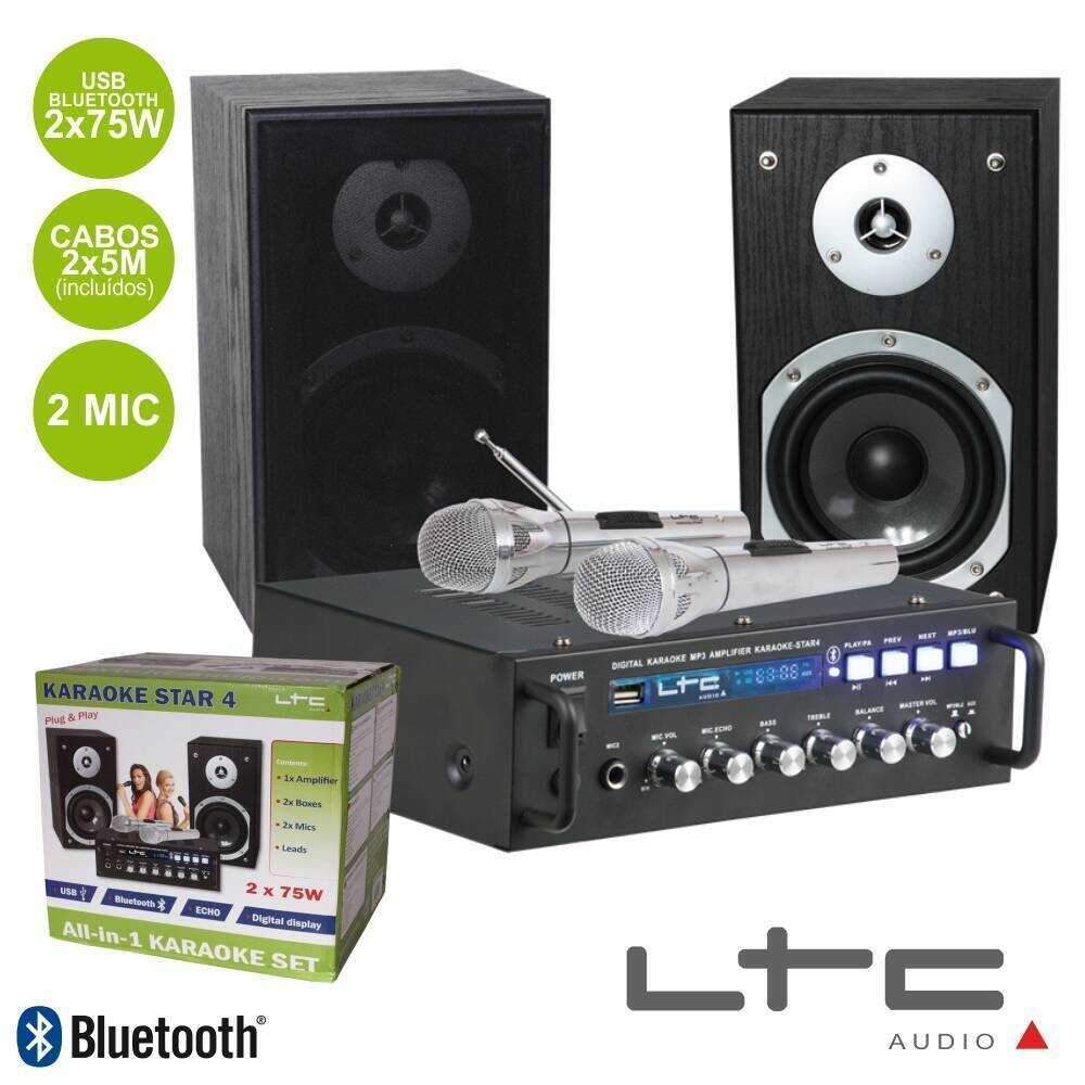 Conjunto Amplificador 2x75W 2 Colunas 2mic BT Ltc