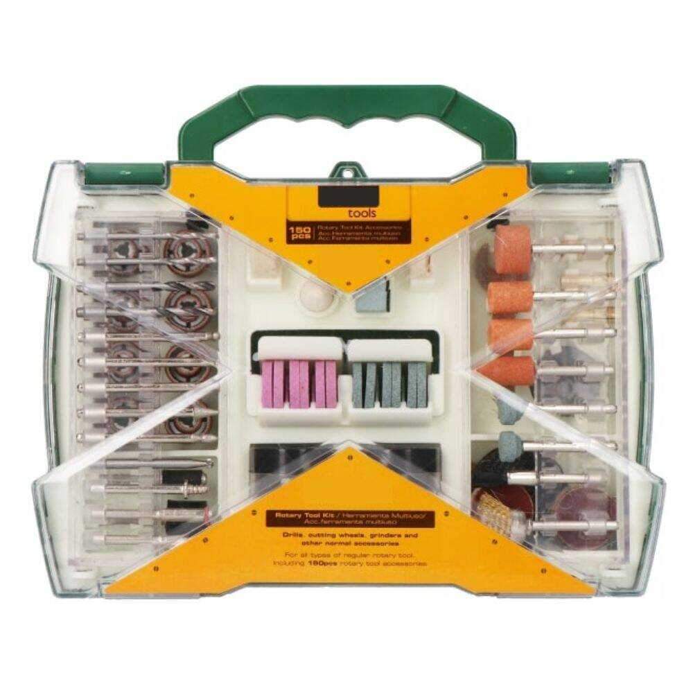 – Mala c/ 150 acessórios p/ berbequim– Adequado p/ trebalhos diversos– Forneciso em caica de plástico– Dimensões: 200 x 165 x 45 mm