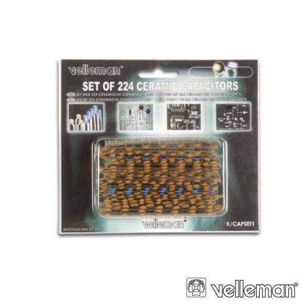 – Conjunto de Condensadores cerâmicos– Contém 21 unidades 10pF/100pF/1nF/10nF100nF, 14 unidades 22pF/47pF/220pF/470pF/2.2nF/4.7nF/22nF/47nF e 7 unidades 220nF