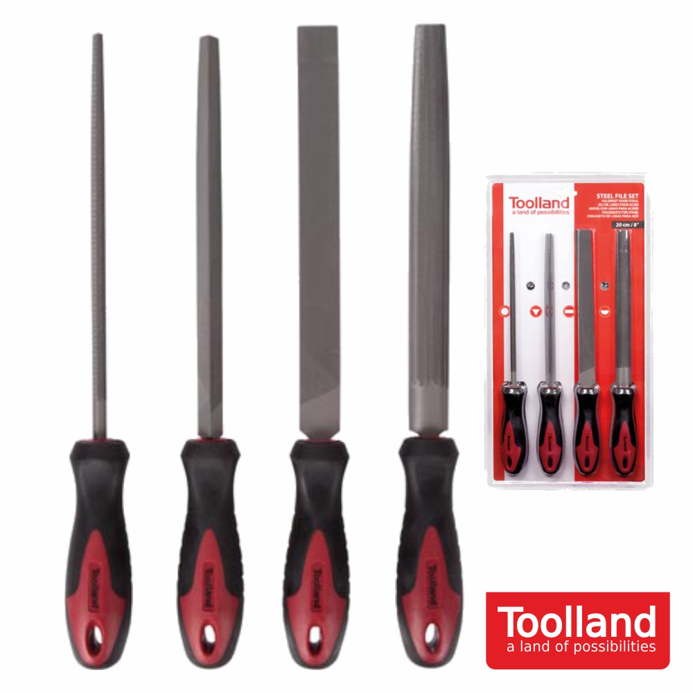 – Conjunto de 4 limas– Composto por 1 x plano, 1 x rodada, 1 x meiarodada, 1 x triangular– Com Punho Ergonómico– Comprimento: 20cm