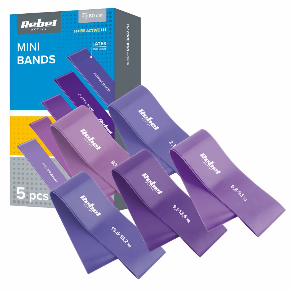 – Conjunto de bandas de treino de diversas resistências– 5 bandas e bolsa de transporte incluídos– Largura: 50mm– Comprimento: 60cm