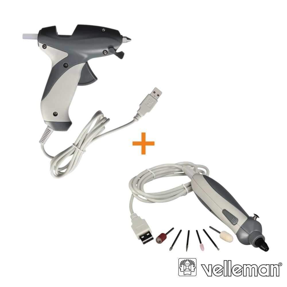 – Berbequim De Precisão Elétrico Acessórios USB 5V VELLEMAN– Pistola De Cola Quente 5W USB 5V VELLEMAN