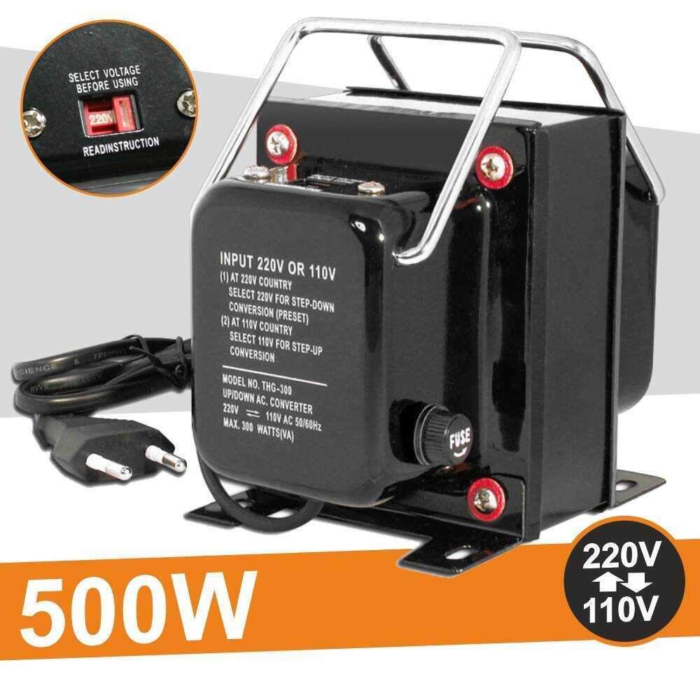 – Conversor 110-220V / 220-110V– Capacidade máxima: 500W– Estrutura Preta metalizada– Proteção c/ isolamento– Selector de tensão