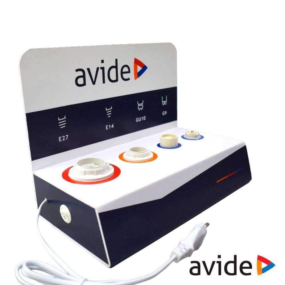 – Estrutura em PVC– Casquilhos: 1xE27, 1xE14, 1xGU10, 1xG9– Ideal para demonstração– Alimentação: 220V AC