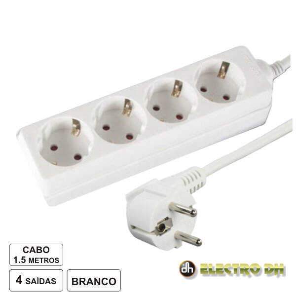 – Tomada eléctrica c/ 4 saídas– Tensão funcionamento: 220-250Vac– Potência: 3500W, Corrente: 16A-14A– Comprimento do cabo: 1.5m, Secção: 3×1.5mm²– Cor da tomada: Branca