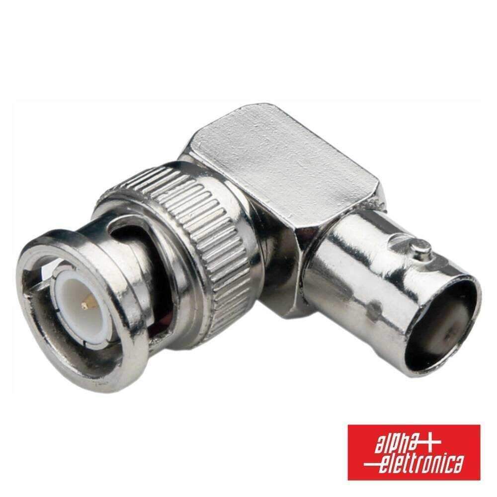 – Ficha adaptadora BNC– BNC Macho / BNC Fêmea– Estrutura Niquelada– Ficha ângular: 90º