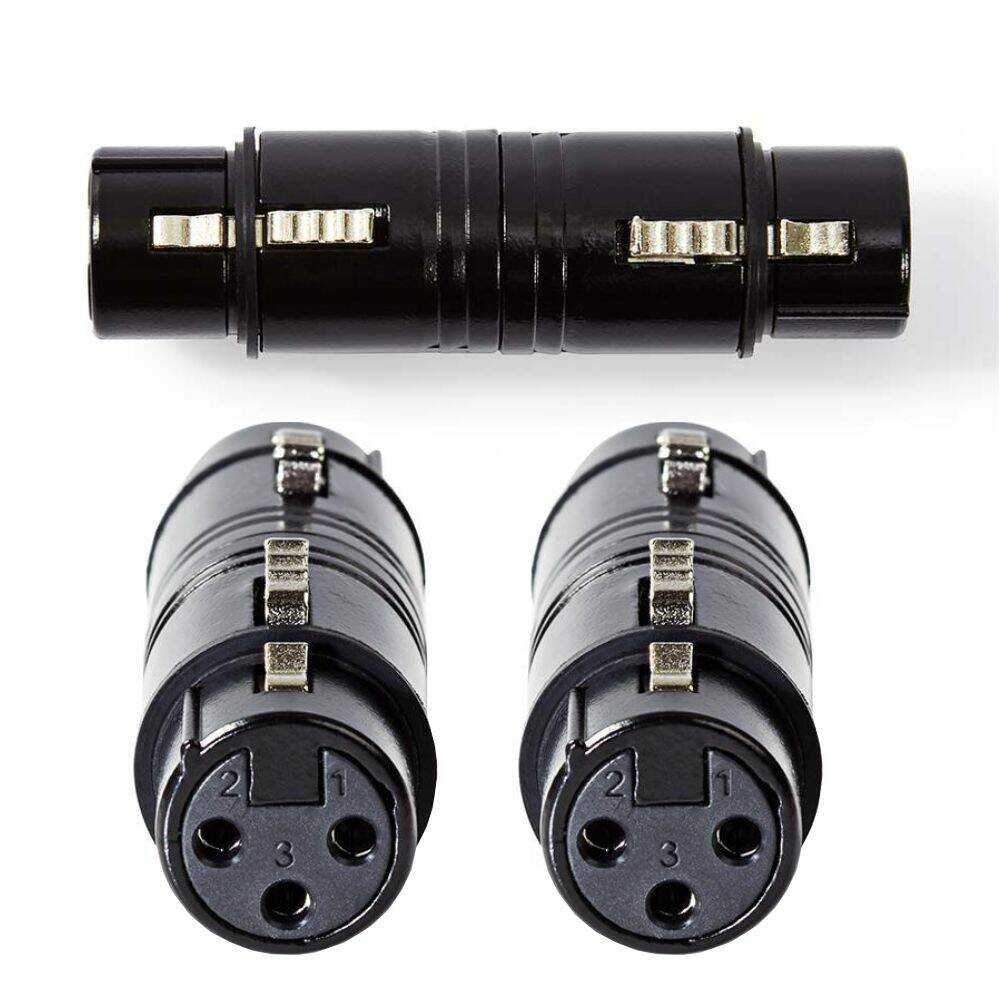 – Ficha adaptadora XLR 3P– XLR 3P Fêmea / XLR 3P Fêmea– Contactos Niquelados– Estrutura em metal preto