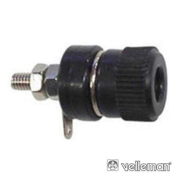 – Ficha c/ terminal de rosca– Diâmetro furação: Ø4mm– Espessura máxima do painel: 12mm– Comprimento: 32mm– Cor do terminal: Preto