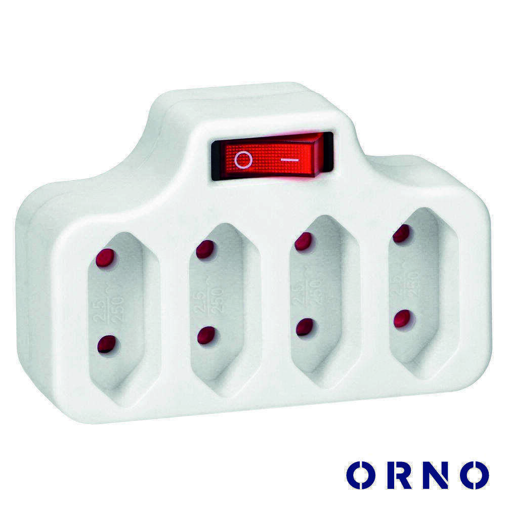 Ficha Elétrica Adaptadora 4x AC Plana C/ Interruptor ORNO