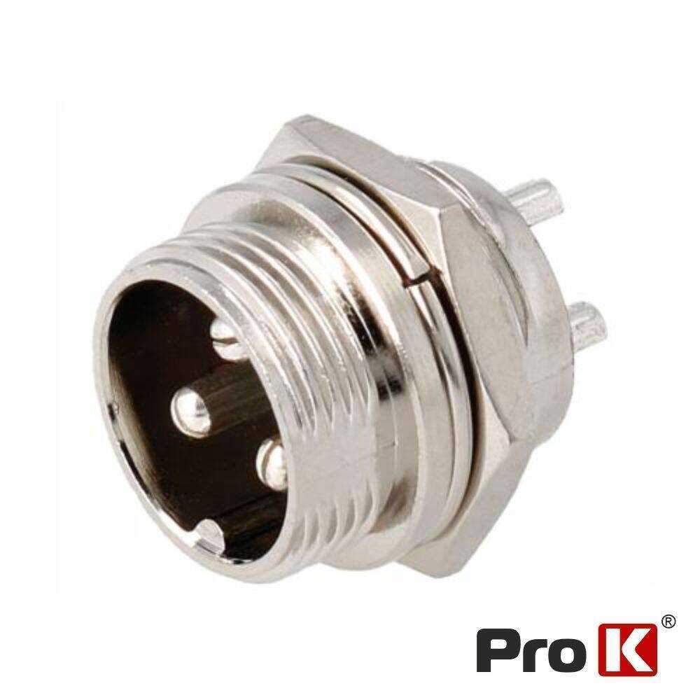 – Ficha de Microfone de Painel– Tipo: Macho 3 Pinos– Estrutura Niquelada– Isolamento em resina Fenólica– Terminais de soldar