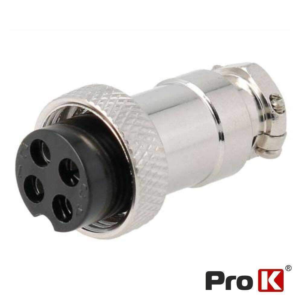 – Ficha de Microfone Fêmea 4P– Estrutura Niquelada– Isolamento em resina Fenólica– Terminais de soldar– Adequado p/ cabo: Ø5-7mm– Fixação por Serra-Cabos