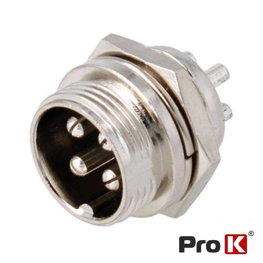 – Ficha de Microfone de Painel– Tipo: Macho 4 Pinos– Estrutura Niquelada– Isolamento em resina Fenólica– Terminais de soldar