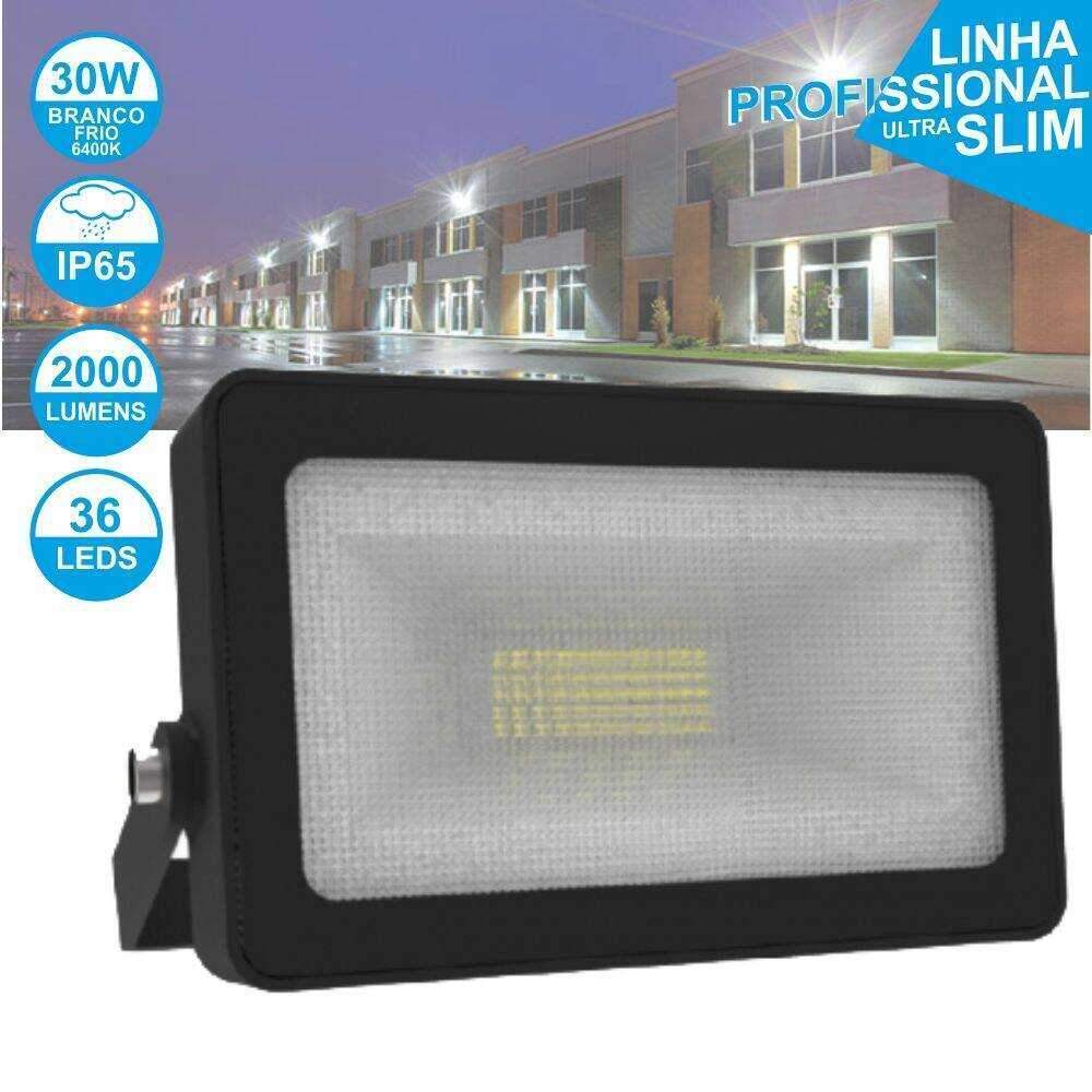 Foco LED 30W 230V Branco Frio 2000lm IP65 Slim Preto