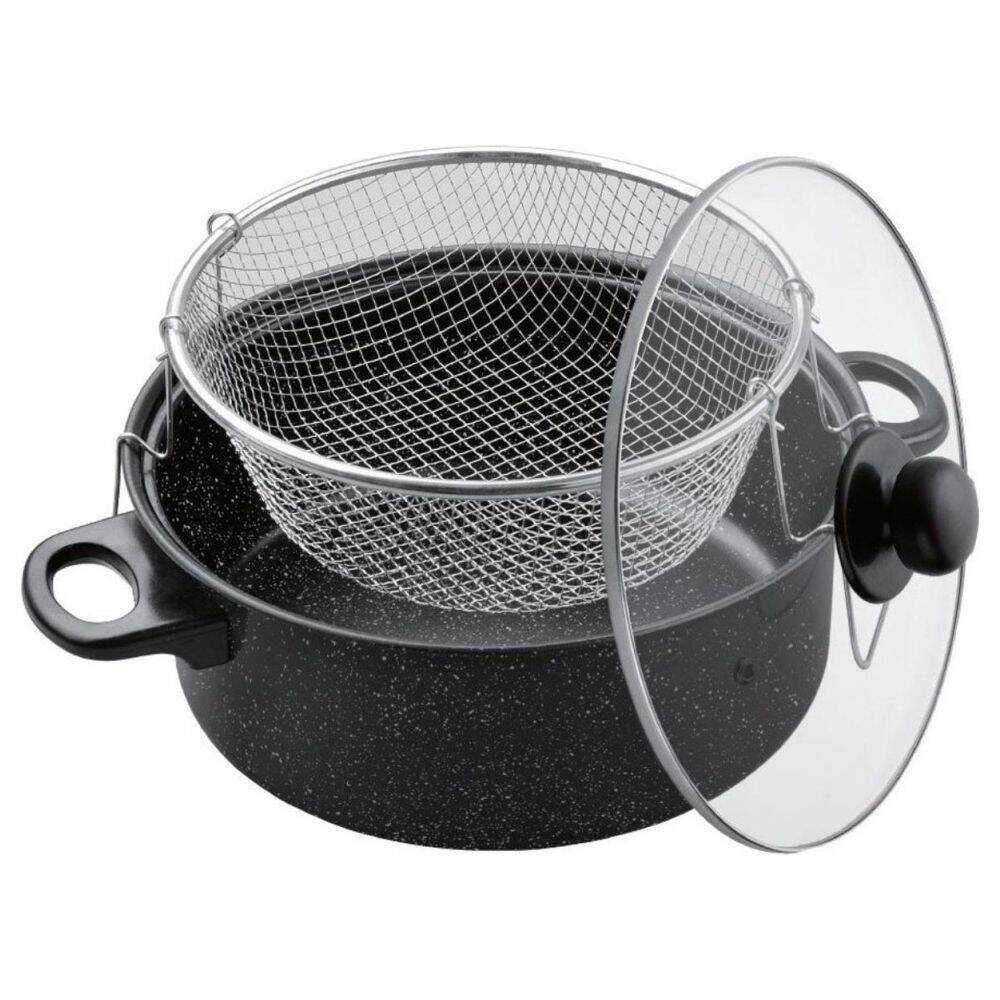 – Fritadeira a óleo– Cesto c/ fundo antiaderente– Adequado p/ fogão a gás, elétrico e cerâmico– Tampa de vidro reforçado– Diâmetro: Ø26cm
