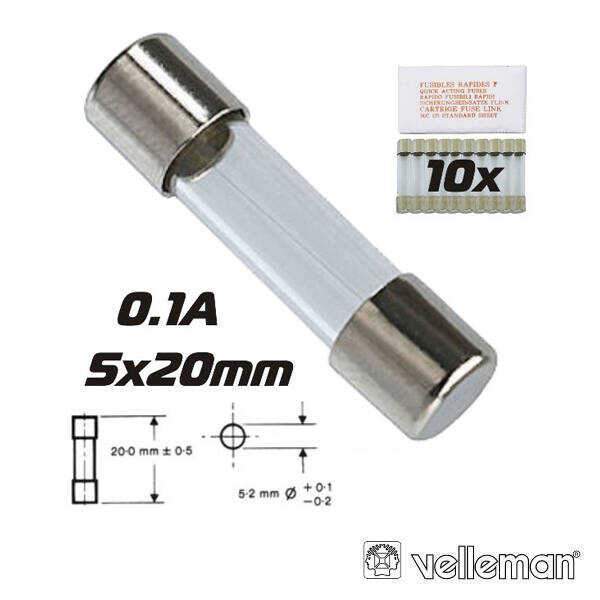 Fusível 5×20 Fusão Lenta 0.1A (10X) VELLEMAN
