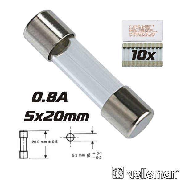 Fusível 5×20 Fusão Lenta 0.8a (10X) VELLEMAN