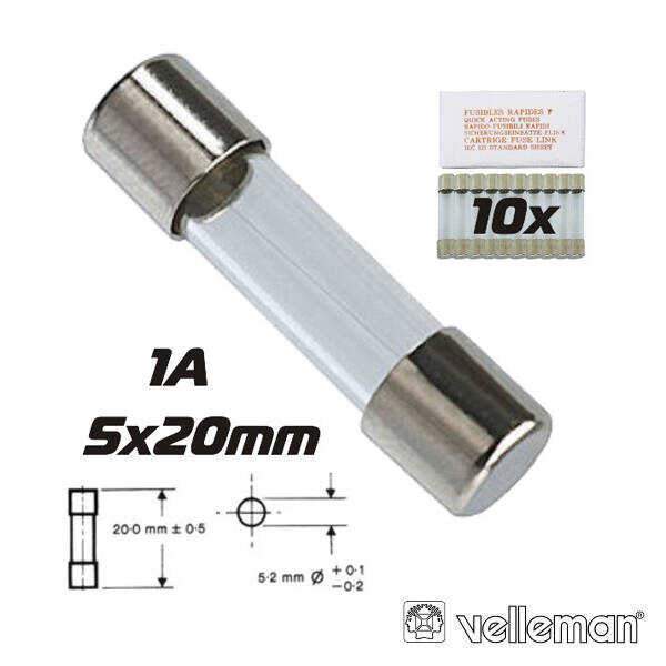 Fusível 5×20 Fusão Lenta 1A (10X) VELLEMAN