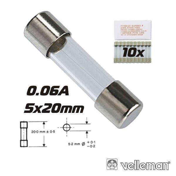 Fusível 5×20 Fusão Rápida 0.06a (10) VELLEMAN