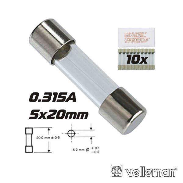 Fusível 5×20 Fusão Rápida 0.315a (10X) VELLEMAN