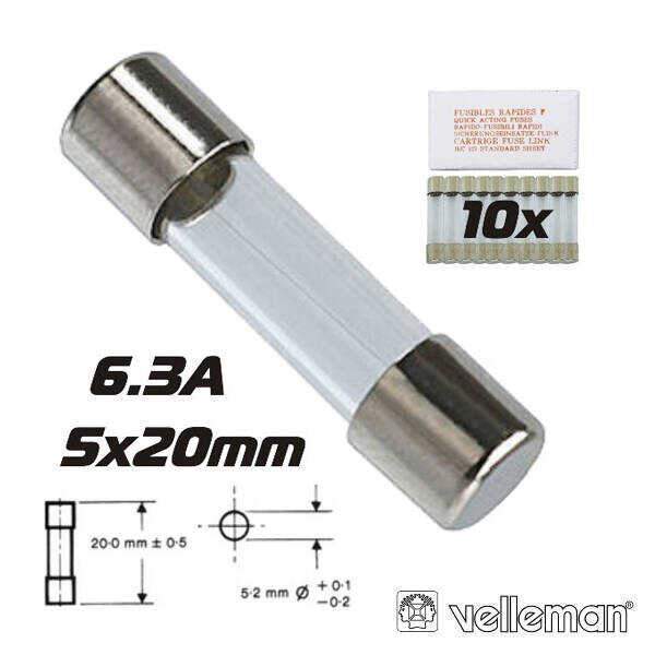 Fusível 5×20 Fusão Rápida 6.3a (10X) VELLEMAN