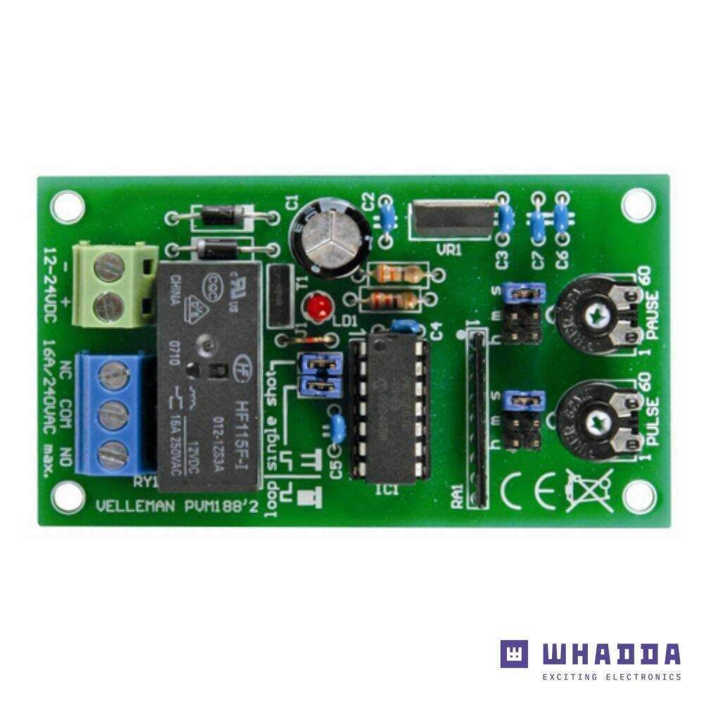 – Kit temporizador ajustável de 1s a 60H– Tensão alimentação: 12-24Vdc– Contacto Relé: 16A máximo– Dimensões: 80x45x22mm