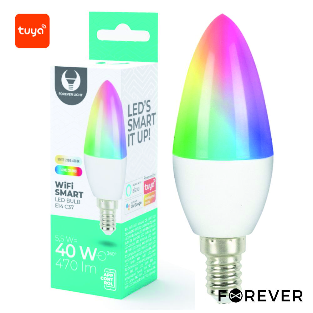 Lâmpada E14 5.5W 230V Vela RGB 470lm WiFi TUYA