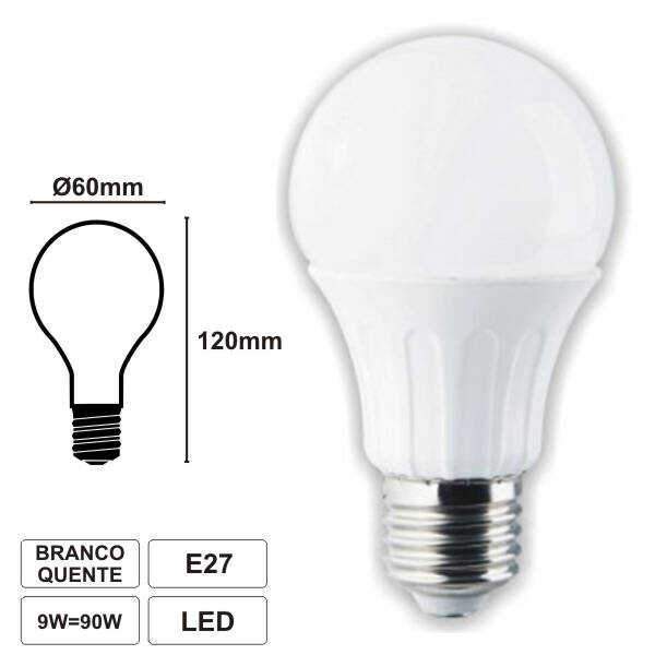 Lâmpada E27 9w=90w 230v Led Globo Branco Quente 615lm