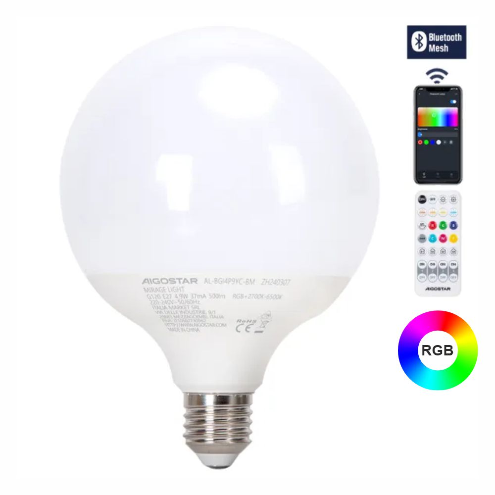 Lâmpada E27 G120 4.9W 230V RGB CCT 500lm Bluetooth