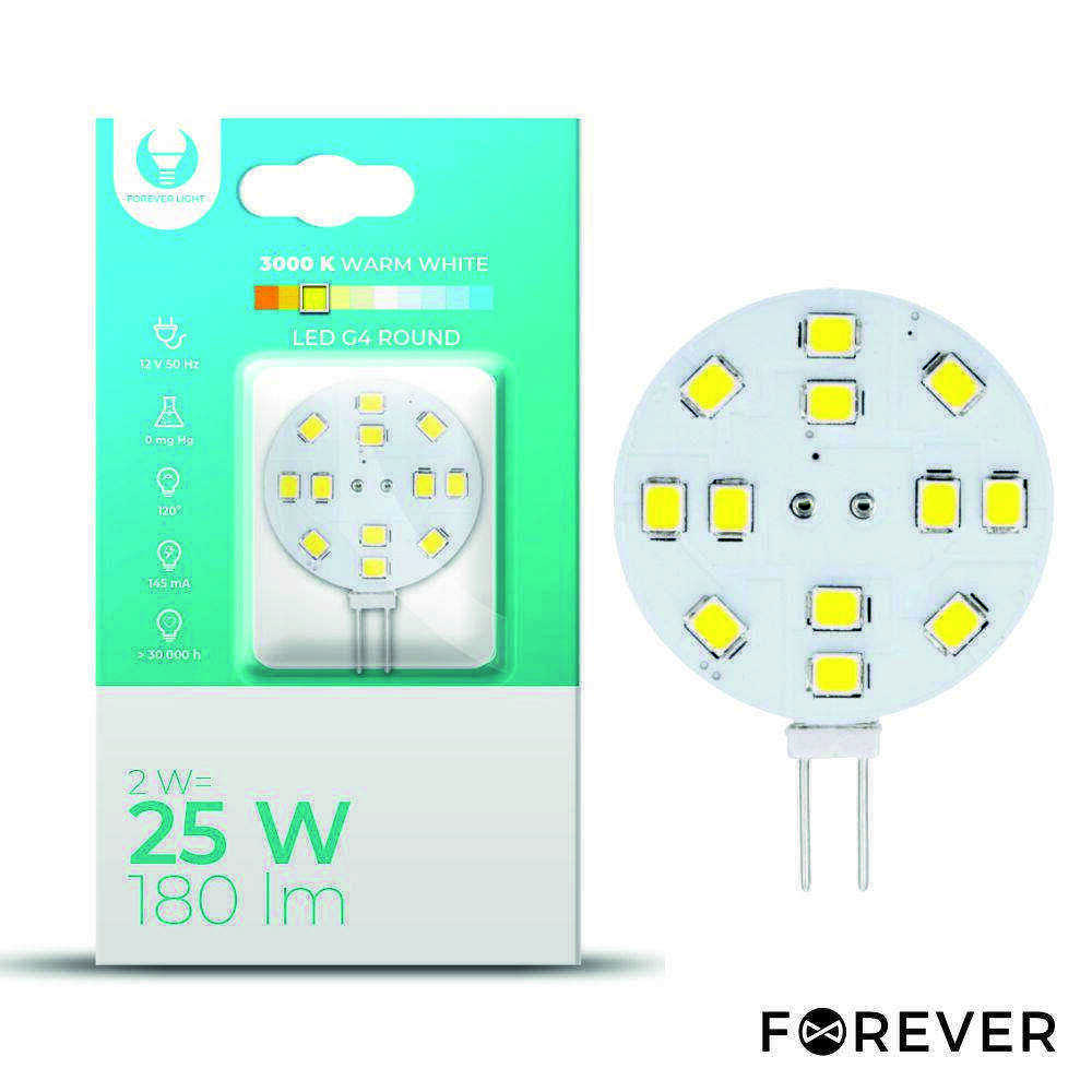 – Lâmpada G4 LED 12V– Tipo de Casquilho: G4– Tensão funcionamento: 12V– Potência: 2W=25W, Branco Quente– Temperatura cor: 3000K, 180 Lumens– Ângulo: 300º, tempo vida: 30000h