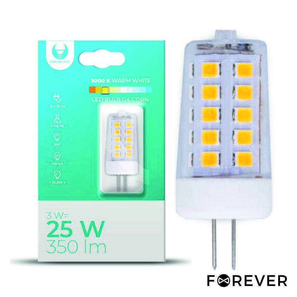 – Lâmpada G4 LED 12V– Tipo de Casquilho: G4– Tensão funcionamento: 12V– Potência: 3W=25W, Branco Quente– Temperatura cor: 3000k, 350 Lumens– Ângulo: 300º, tempo vida: 30000h