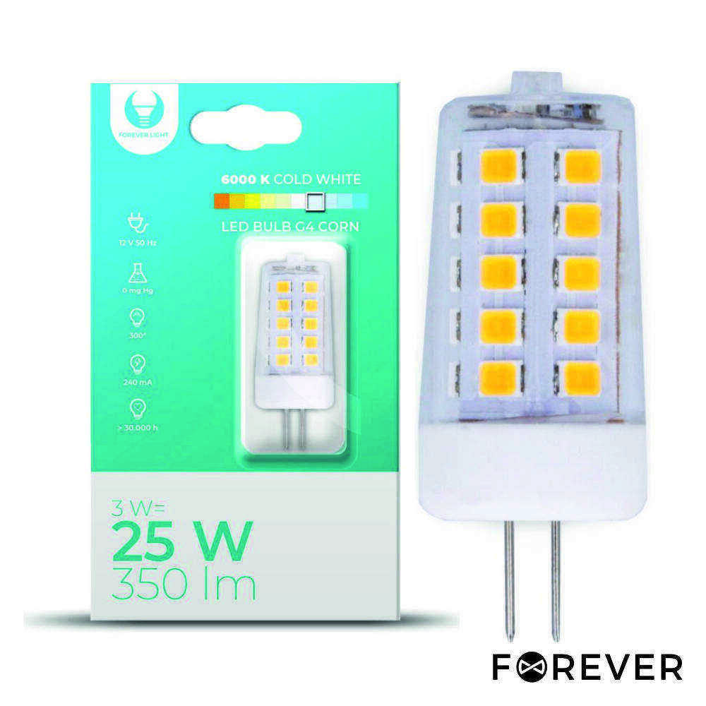 – Lâmpada G4 LED 12V– Tipo de Casquilho: G4– Tensão funcionamento: 12V– Potência: 3W=25W, Branco Frio– Temperatura cor: 6000K, 350 Lumens– Ângulo: 300º, Tempo vida: 30000h