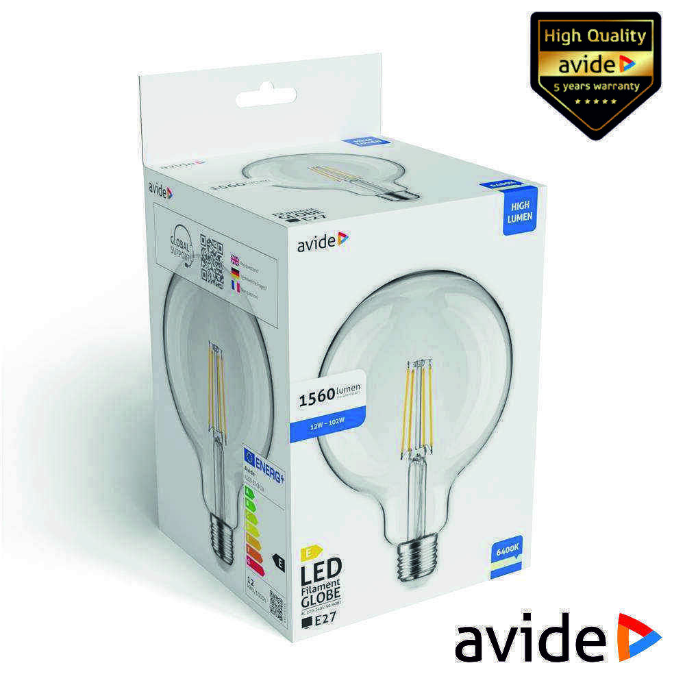 Lâmpada LED E27 Globo Filamento 12W 240V 6400K 1560lm AVIDE
