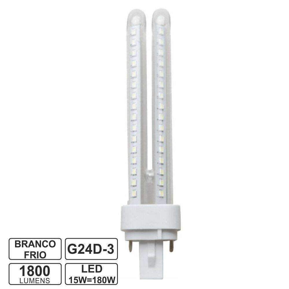 – Lâmpada G24 B5 PLC 2U LED– Tipo de Casquilho: G24 (G24d-3)– Tensão funcionamento: 230Vac– Potência: 15W, equivalente a 180W– Temperatura cor: 6400k, 1800 Lumens– Ângulo: 360º
