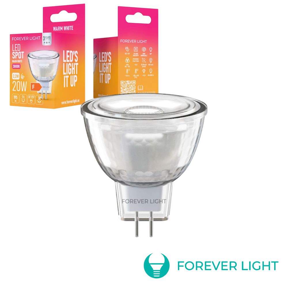 – Lâmpada LED G4 MR11– Tipo de Casquilho: G4– Tensão funcionamento: CC12V– Potência: 2.2W=20W, Branco Quente– Temperatura cor: 3000K, 195 Lumens– Ângulo luminoso: 38º