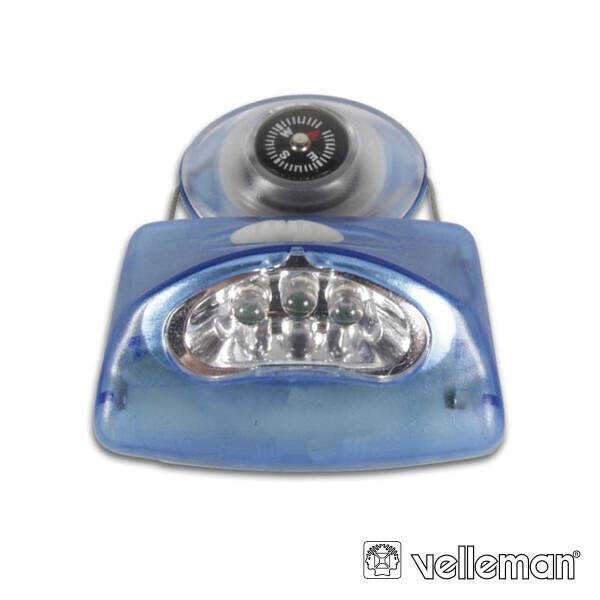 – Lanterna de cabeça c/ 3 LEDs e Bússula– LEDs: 3 LEDs brancos de alto brilho– Pode ser fixado na cabeça, volante, etc.– Alimentação: 3 Pilhas AAA 1.5V (incluídas)– Fornecido em Blister